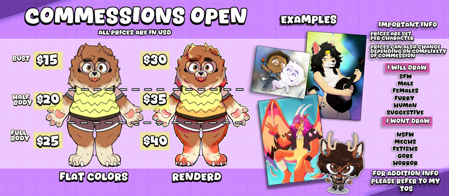 By commissioning me, you are agreeing to the Terms of Service outlined below. Terms and conditions, as well as pricing, may vary depending on the commission type. For custom commissions such as emotes, stickers, etc., we can negotiate a price once the commission form has been completed. You can reach me via Telegram or Discord once the commission form has been filled out. For any will/won’t draw concerns, please refer to my commission page. If you are unsure, you can still fill out the form, and I will let you know if it can be negotiated. Please respect when my slots are full and wait until I get to your commission. Thank you! ❤️